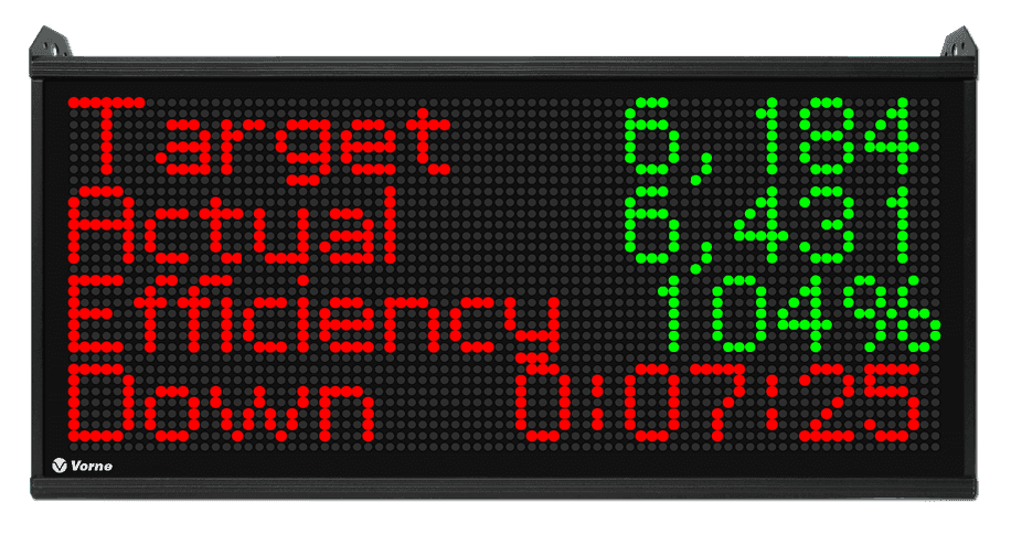 By comparing Target to Actual, your team can pace production in real time. They are winning the shift when the Efficiency is at 100% or more. At the end of the shift, the display could then provide instant feedback telling the team that they’ve beaten the target: